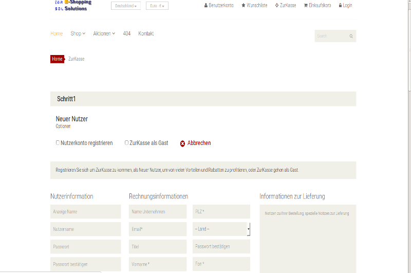 Registrierung neuer Nutzer, Bestellübersicht, Zahlungsart wählen
