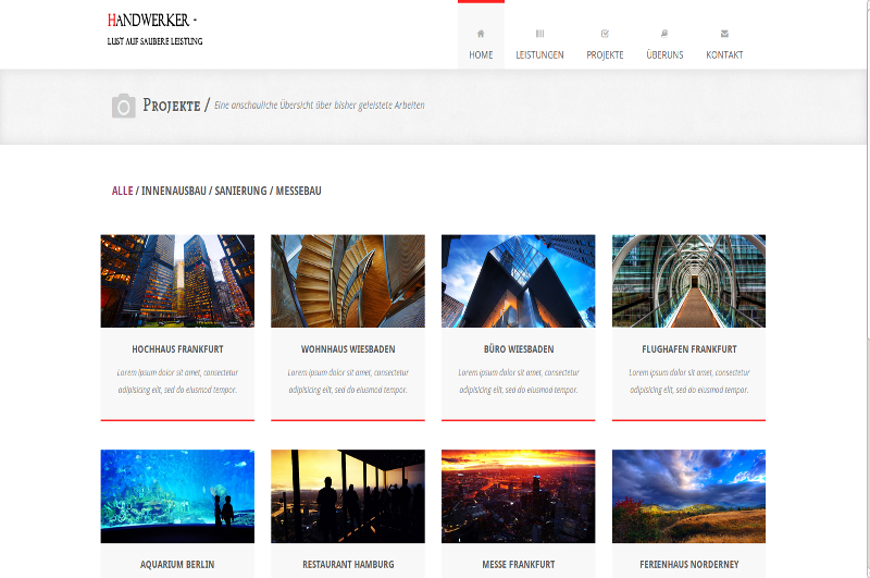 Bildergalerie mit Texten, Auswahl nach Projektart
